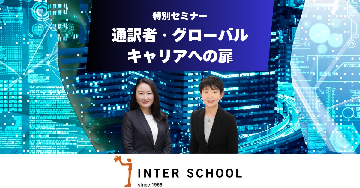 この夏、通訳者・翻訳者養成学校のインタースクールでは、2人の現役通訳者が登壇する【特別セミナー】通訳者・グローバルキャリアへの扉を開催いたします。